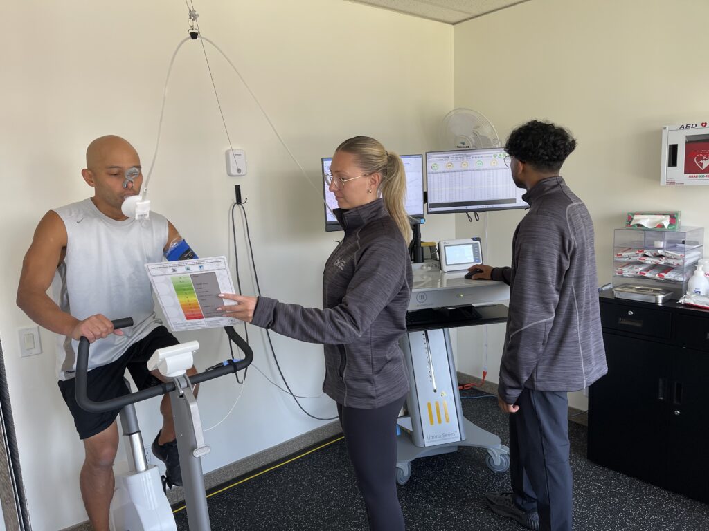 Cancer Fatigue Services always looks for ways to leverage technology to further our mission to support anyone who has developed or experienced worsening fatigue at any point following a cancer diagnosis. Pictured here, I am helping our clinical team test and iterate on our cardiopulmonary exercise test (CPET) data collection.